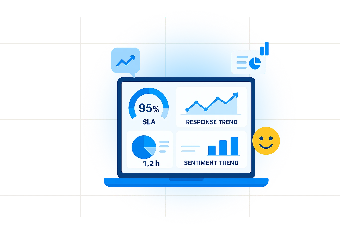 Monitor SLA, response time, and sentiment trends with automated data visualization and reports.